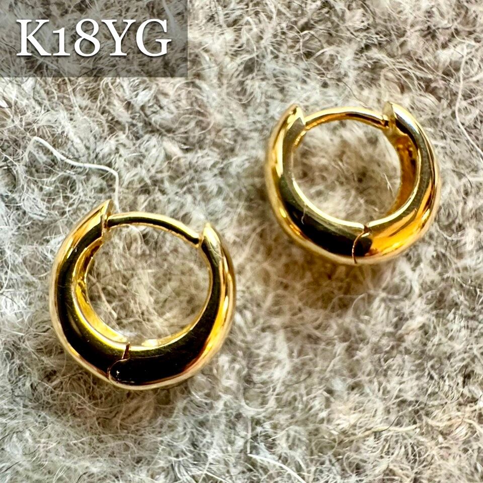 K18YG*両耳用*ぷっくり中折れピアス*イエローゴールド*