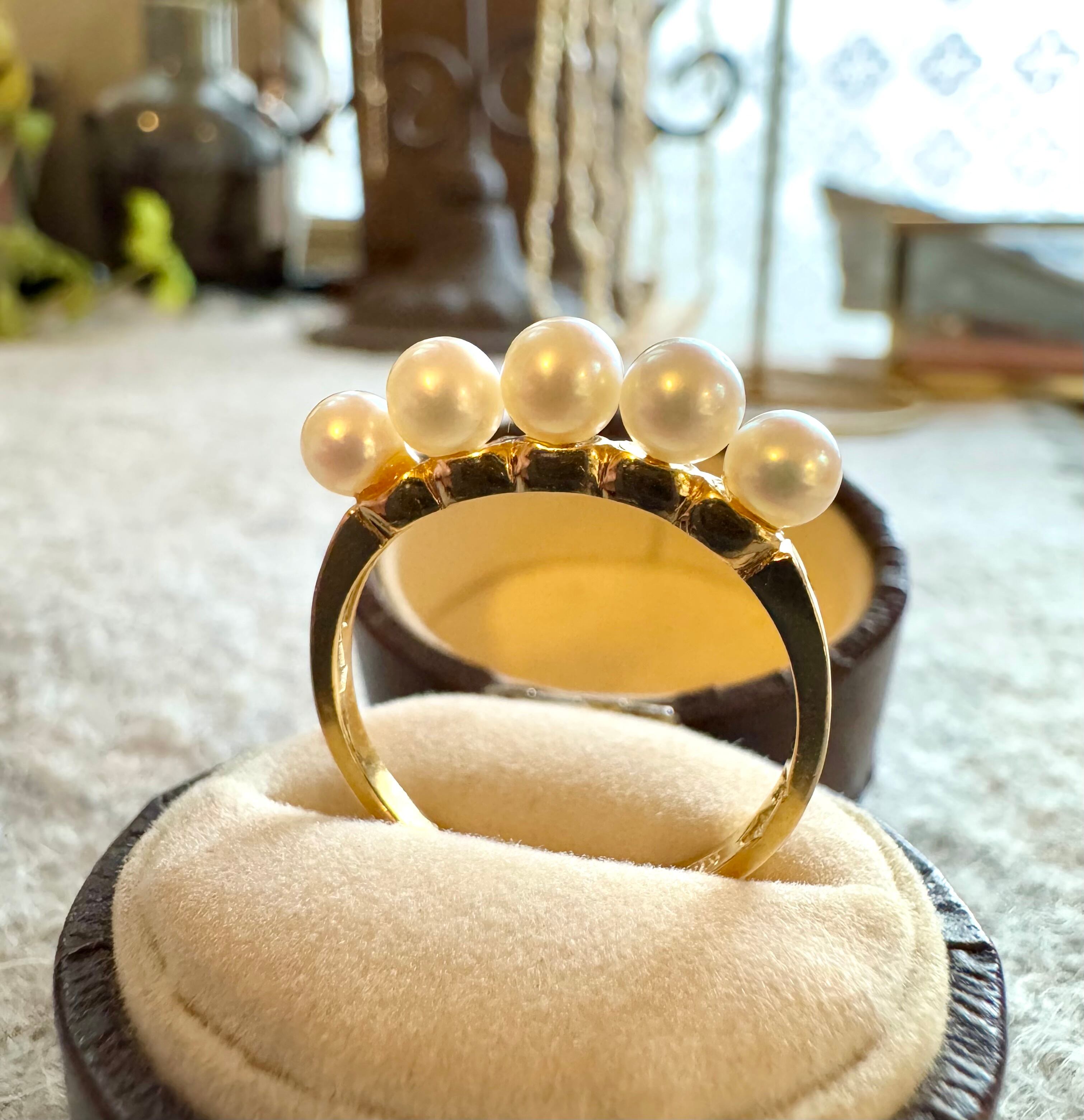 5Pパールリング✦ฺ18YG*14.5号*リング*指輪*ホールマーク有り