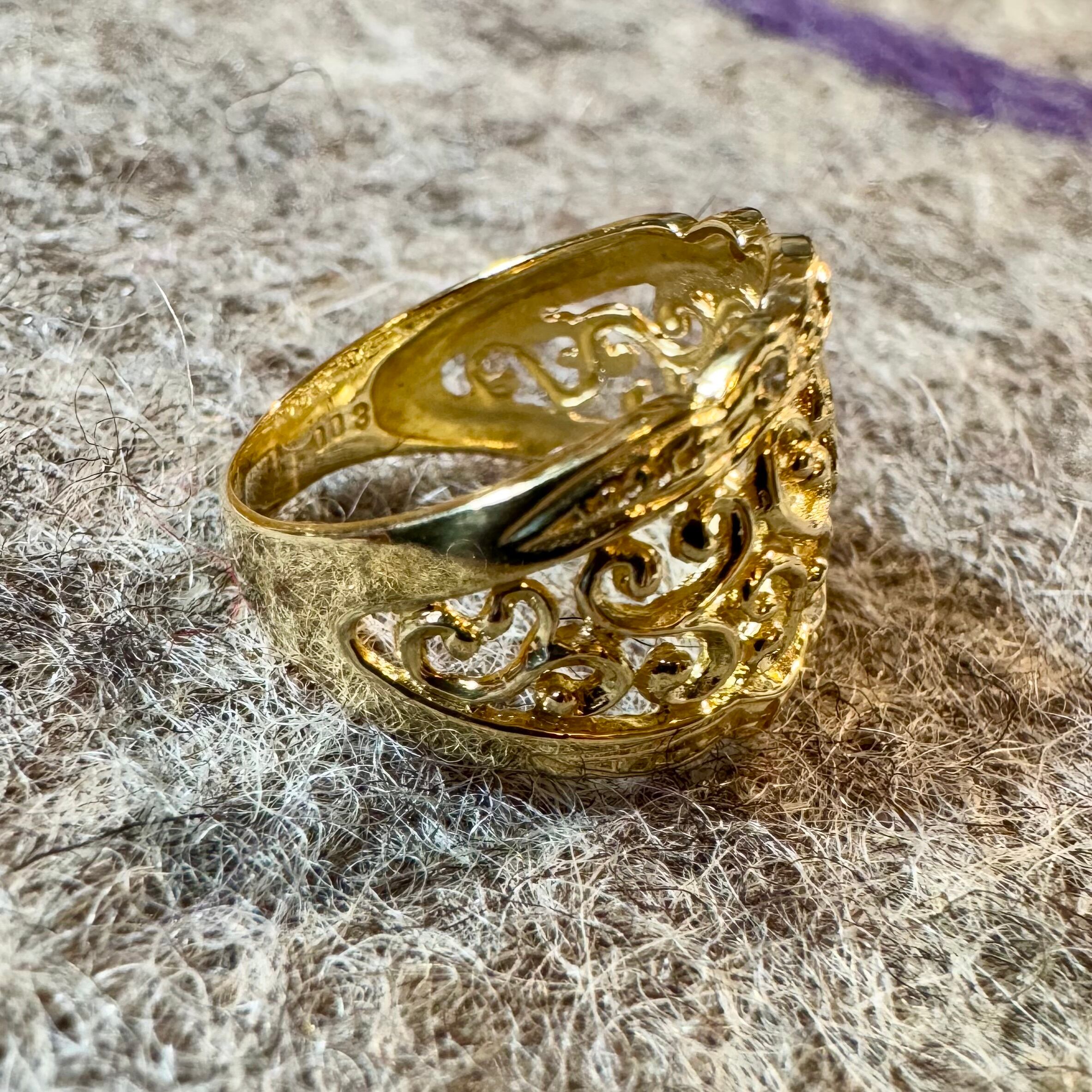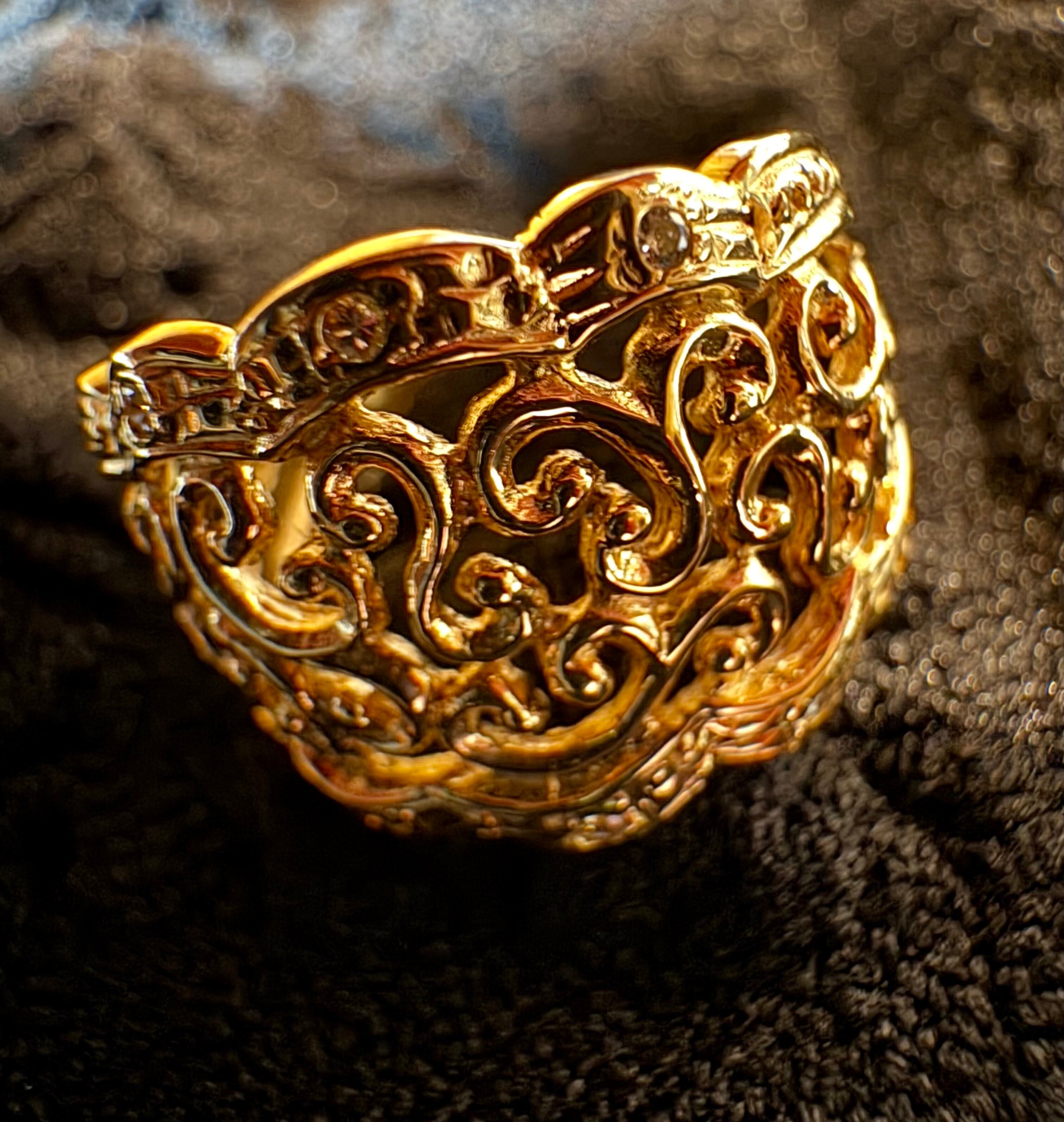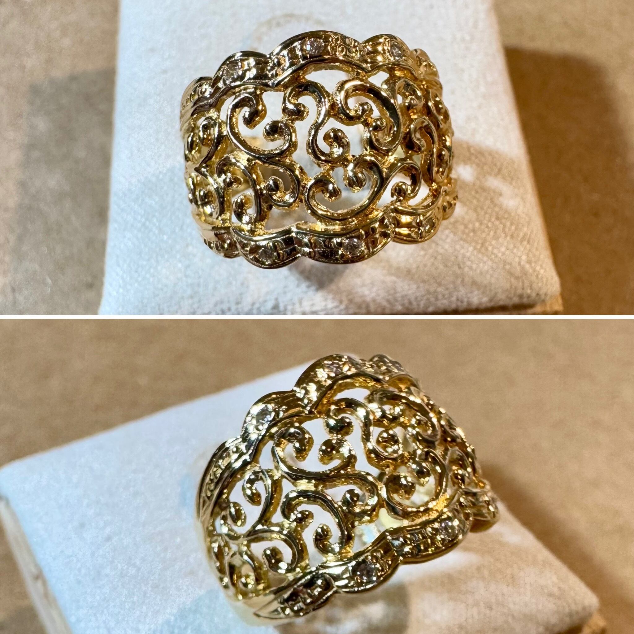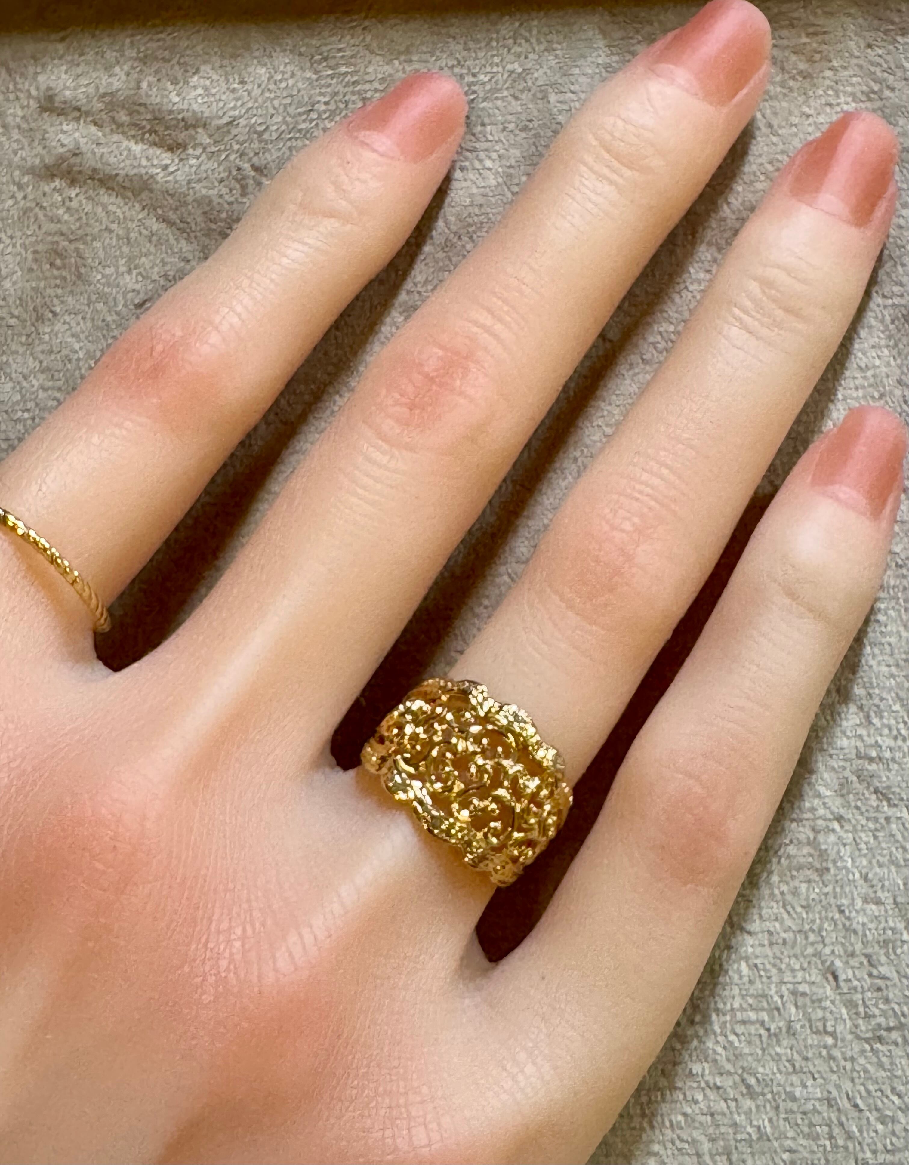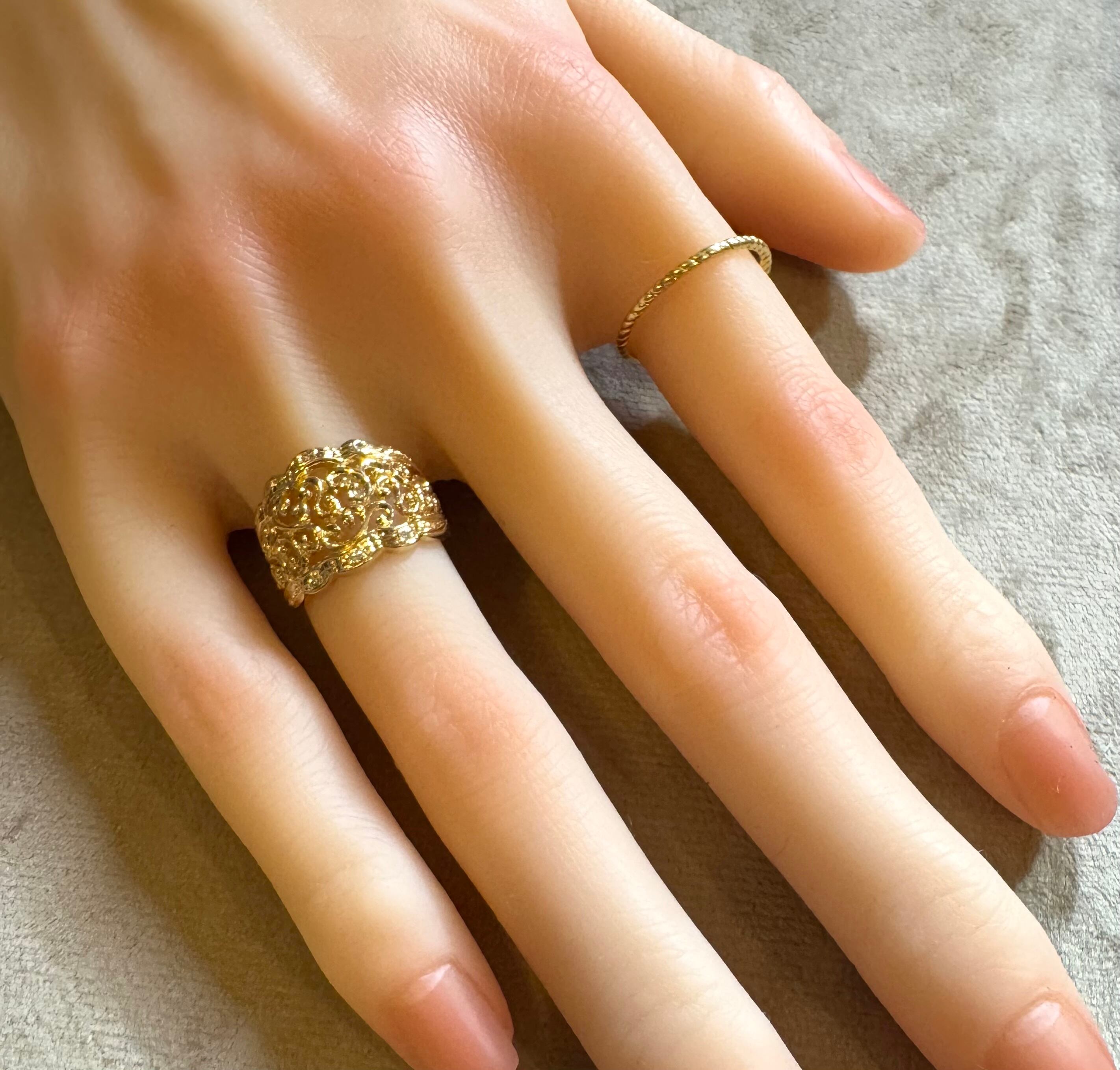 幅広透かしボリュームダイヤモンドリング*K18YG*10号*指輪