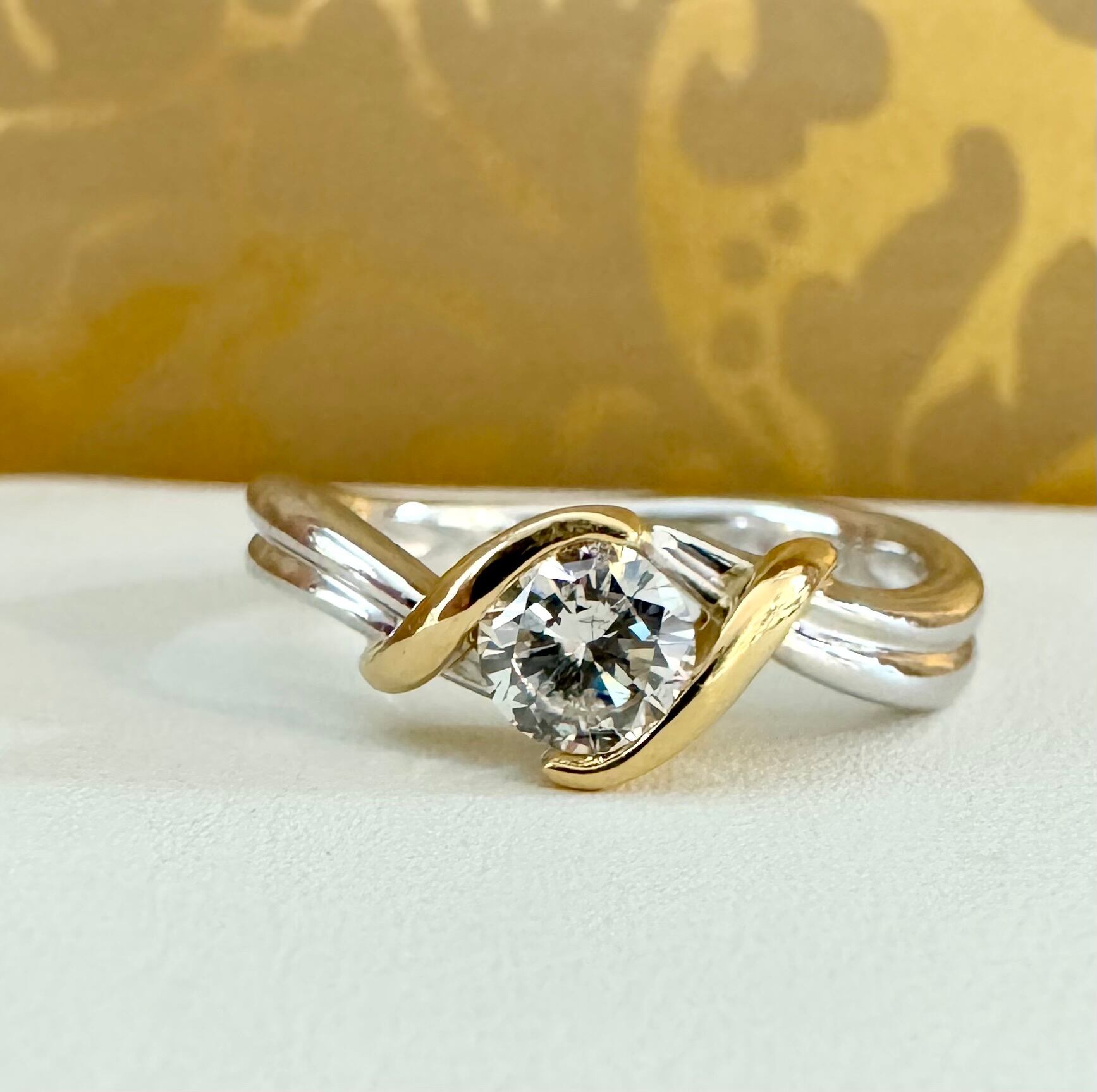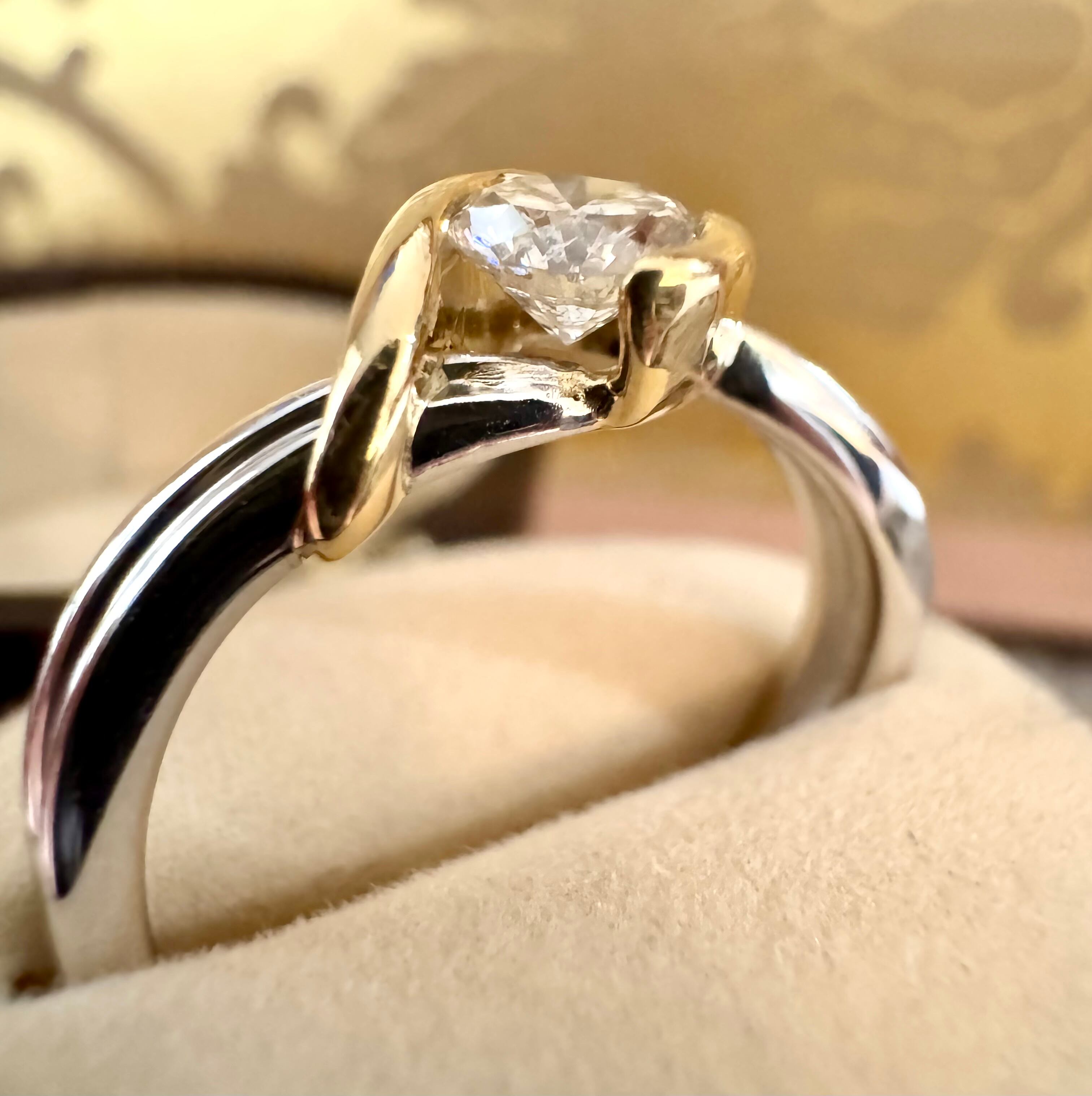 大粒0.41ctの一粒ダイヤモンドがセットされたプラチナ&ゴールド、ダイヤモンドコンビリングです✦
