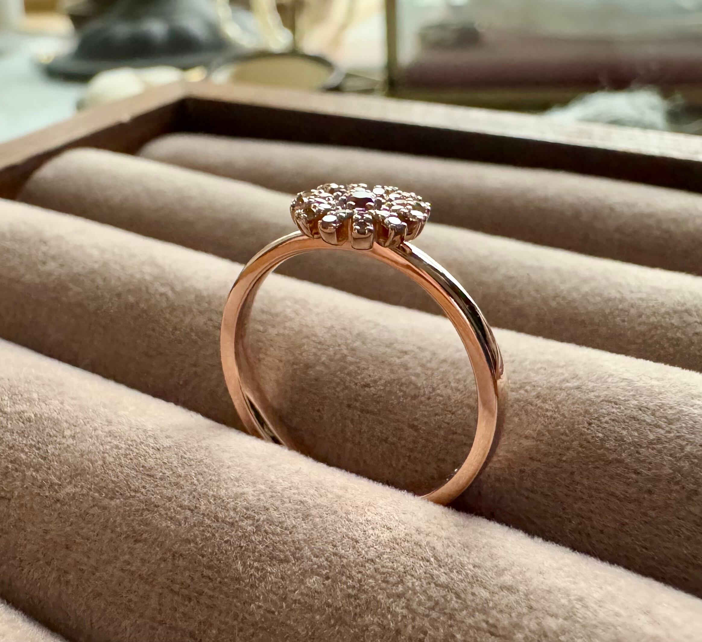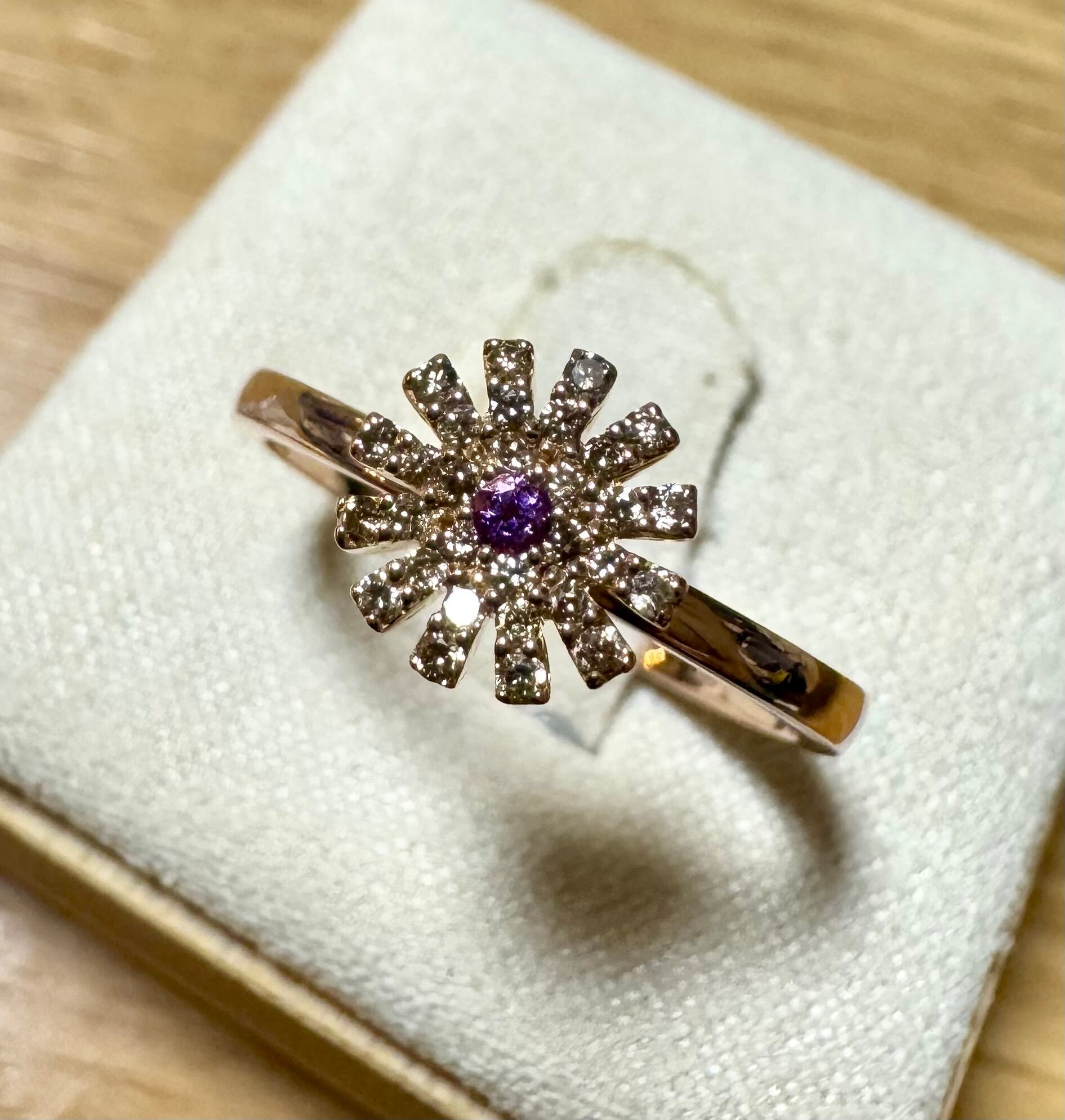 センターにはアメジスト・花びらはブラウンダイヤモンドで彩られています。