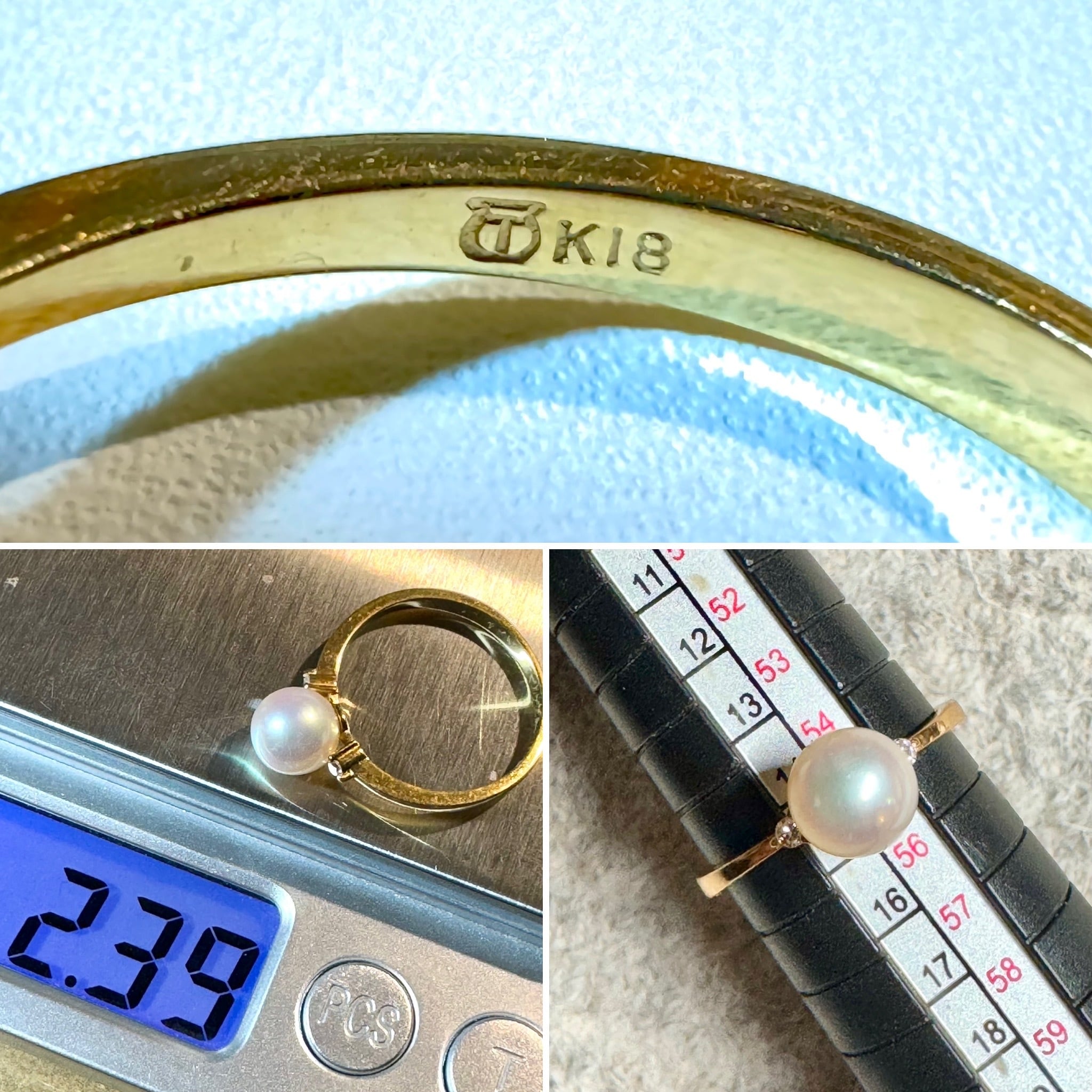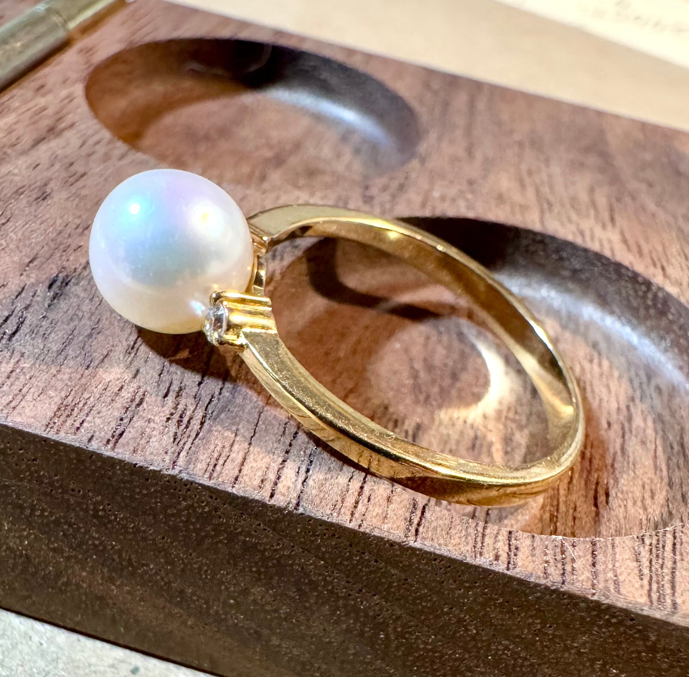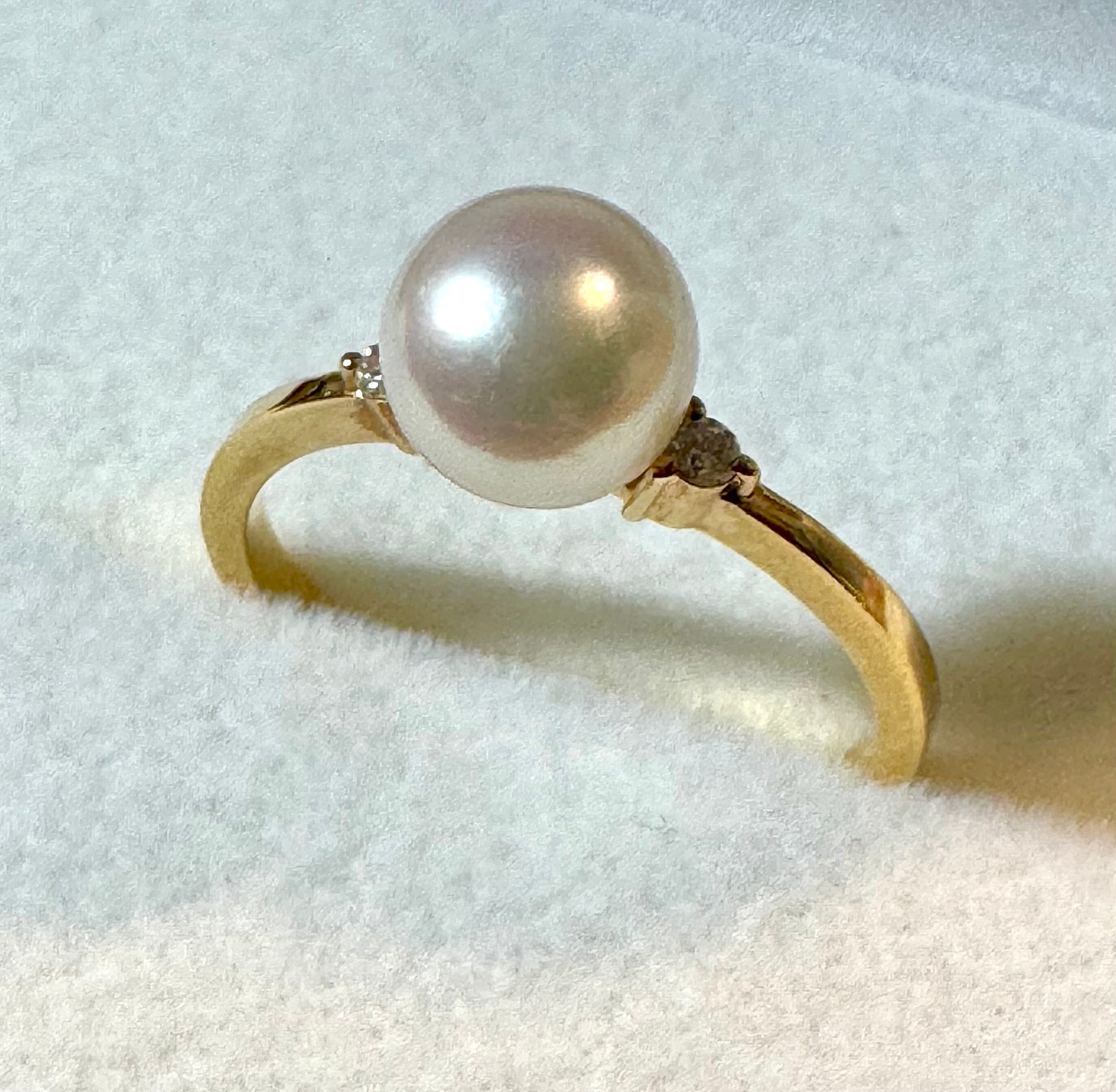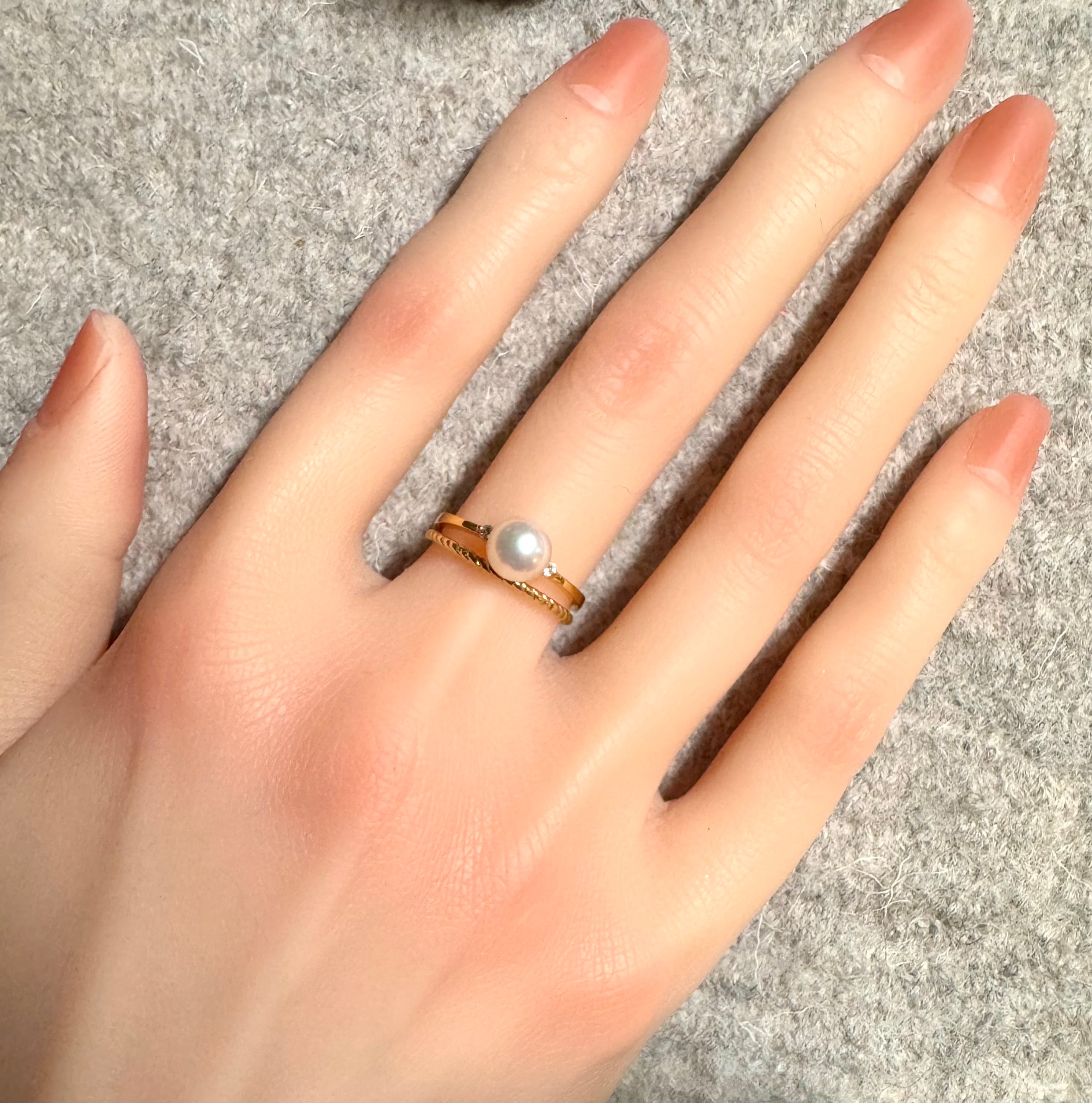 田崎真珠のK18YG・真珠とダイヤモンドを使用したエレガントなリング。