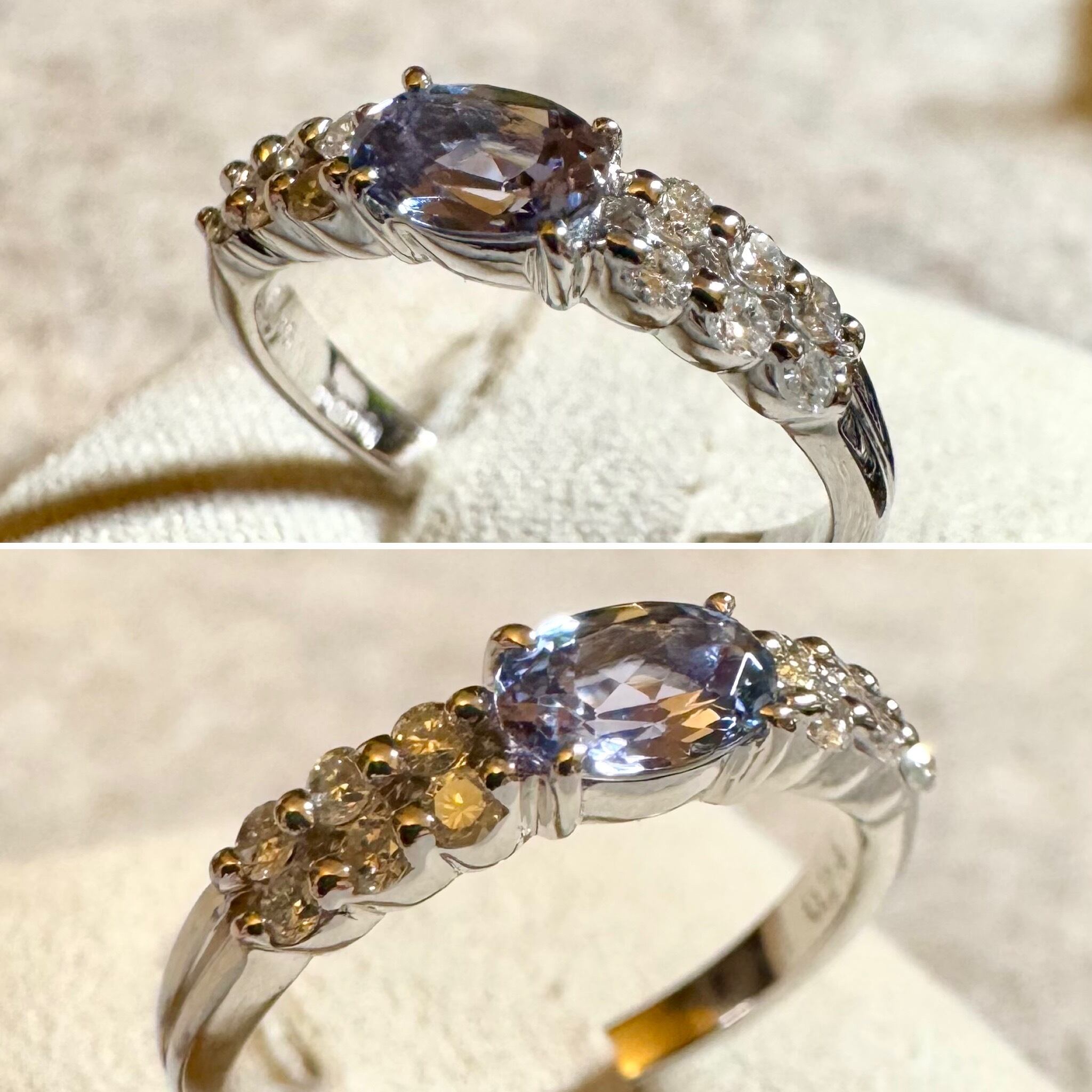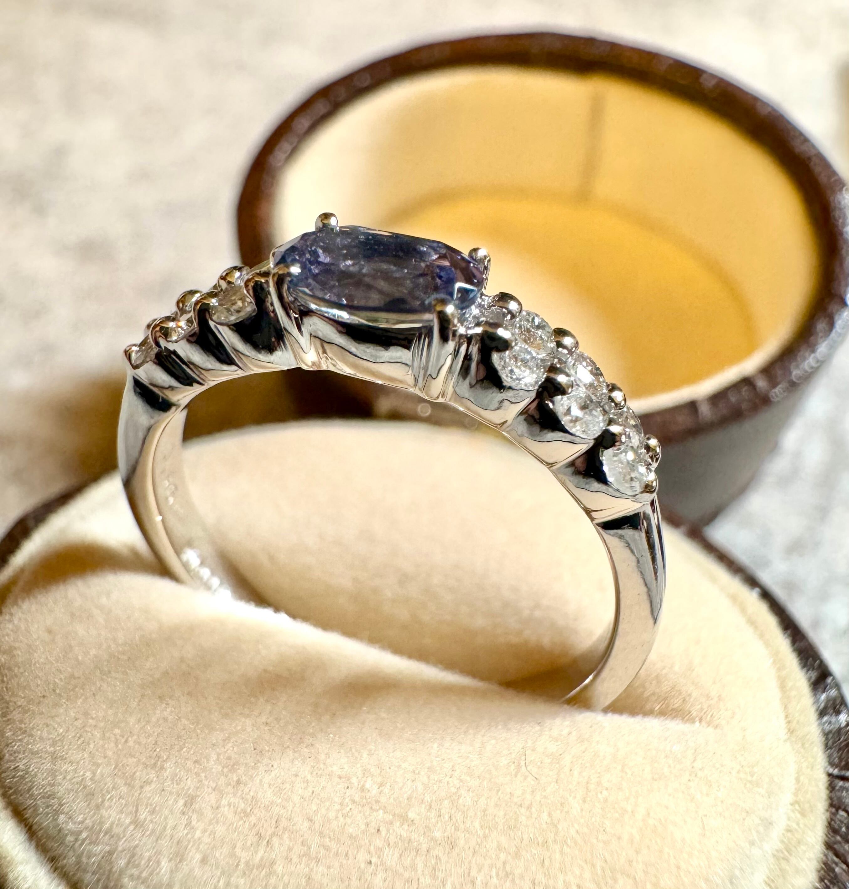 艶とカットが美しいタンザナイトをセンターに、そのサイドには美しいダイヤモンドが連なったプラチナリング✦