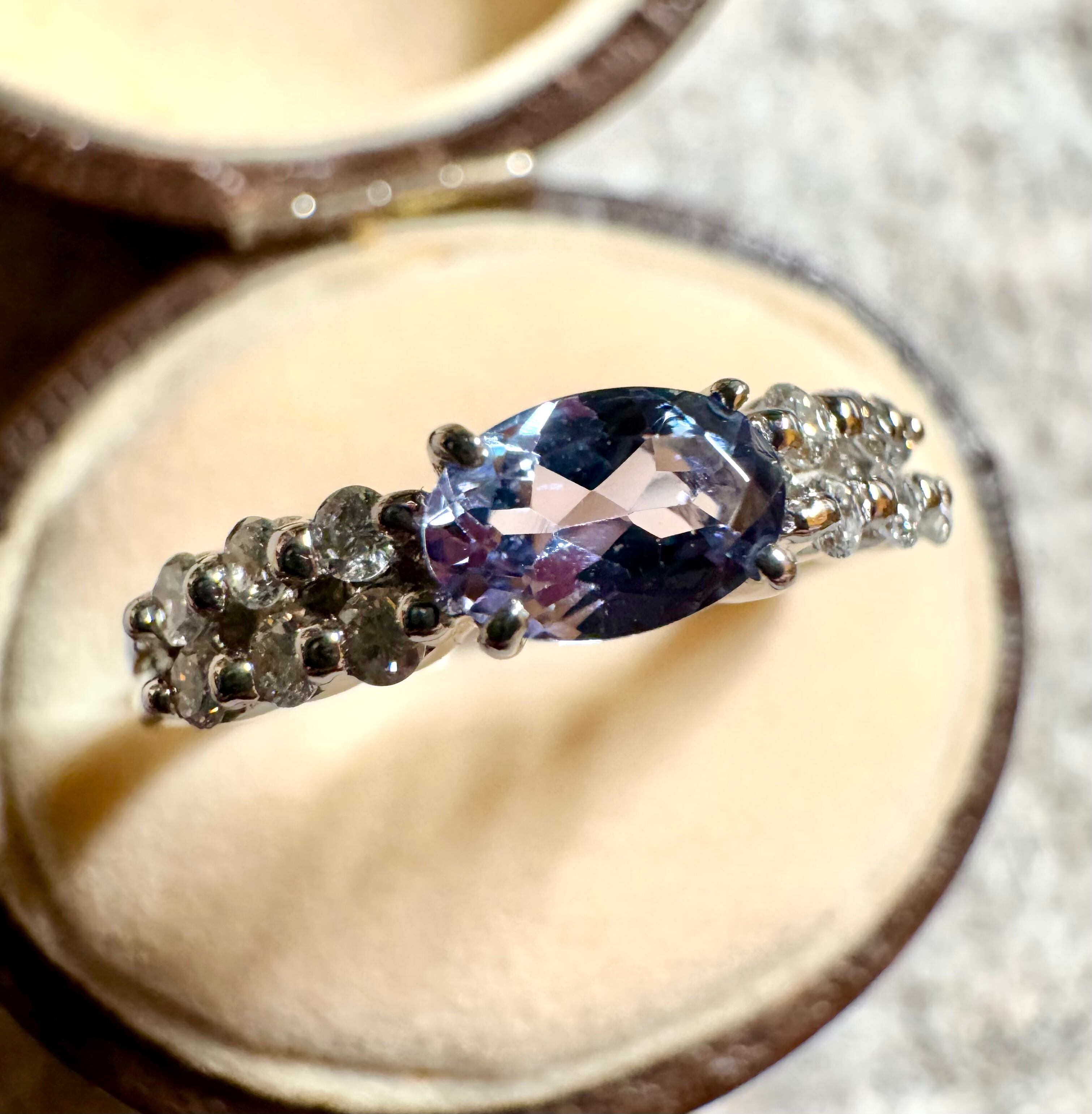 タンザナイトの色味がとても魅力的なハーフエタニティデザインリングです◡̈*