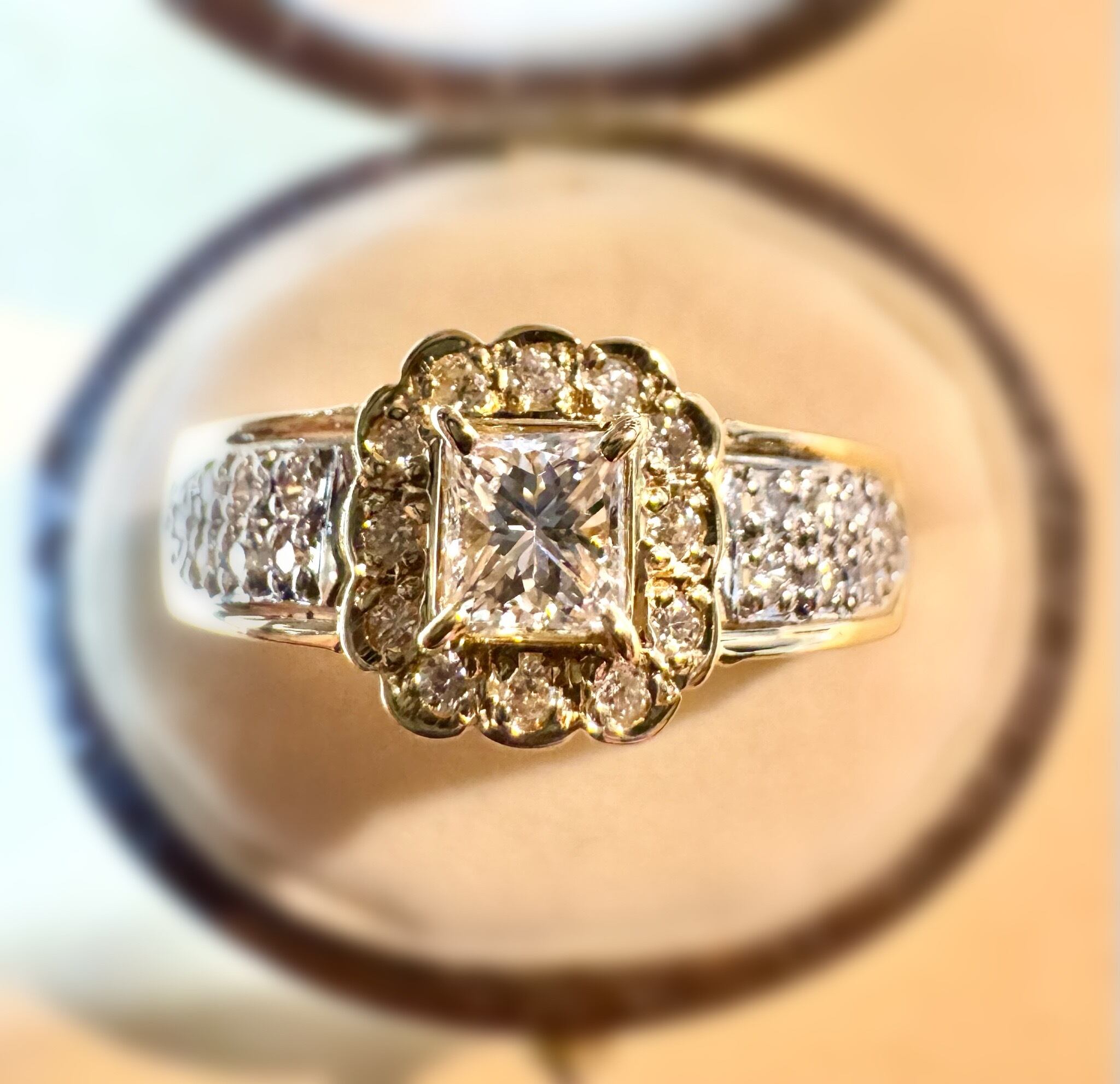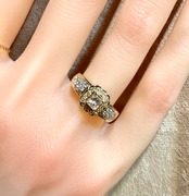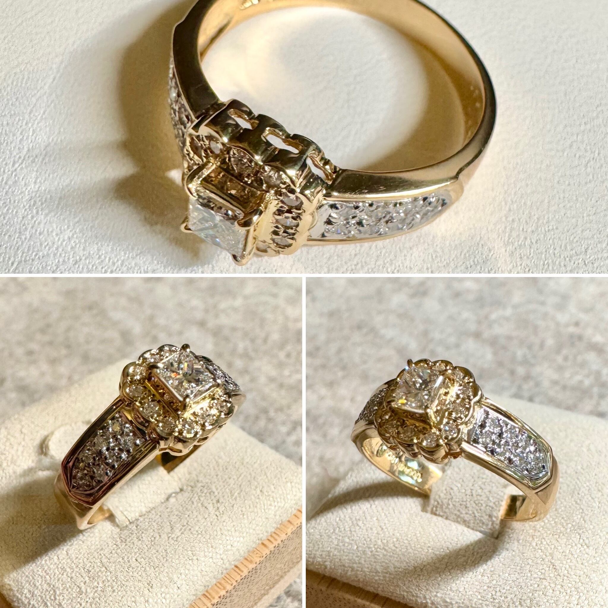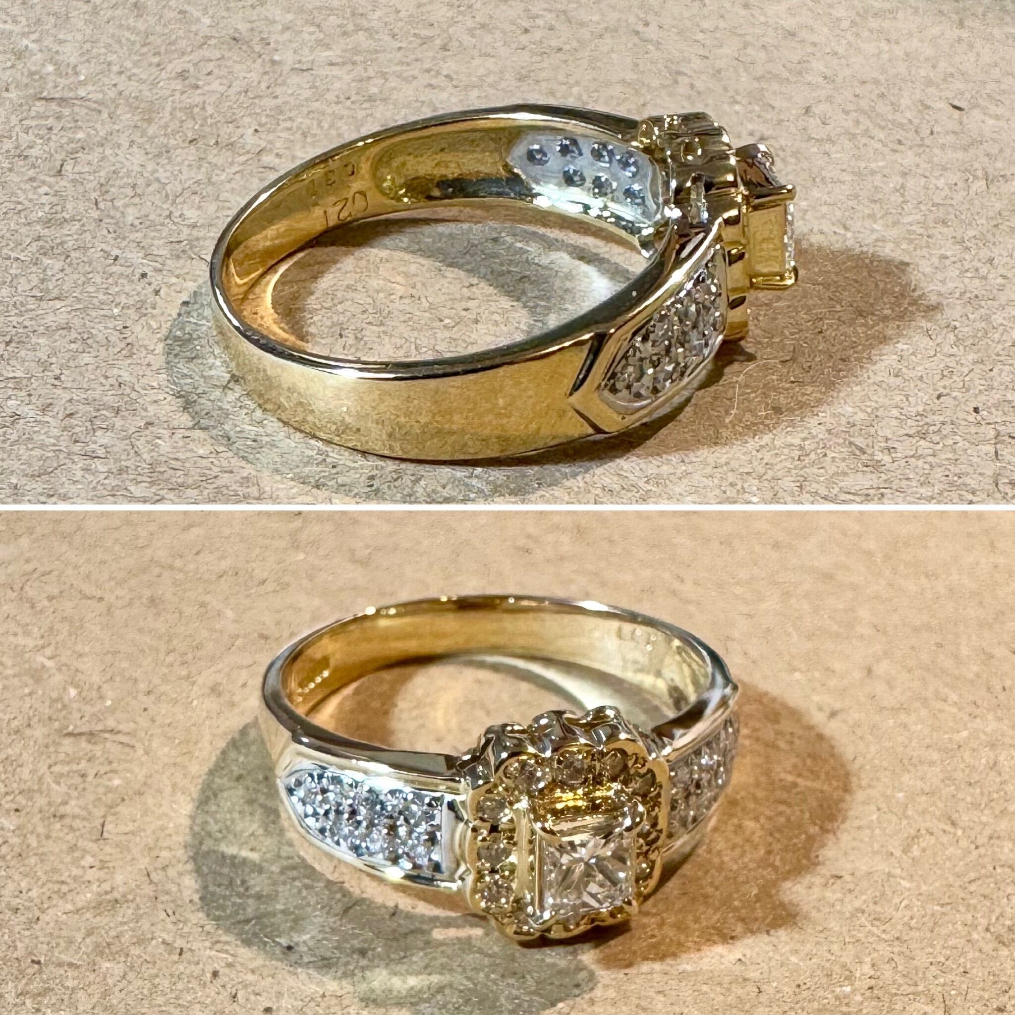 K18イエローゴールドをメインに、センターダイヤモンド(0.21ct)はプリンセスカット。肉眼でのインクルージョンは確認出来ず、カラーも透明に近くとても美しい佇まいです。