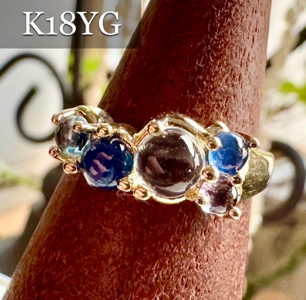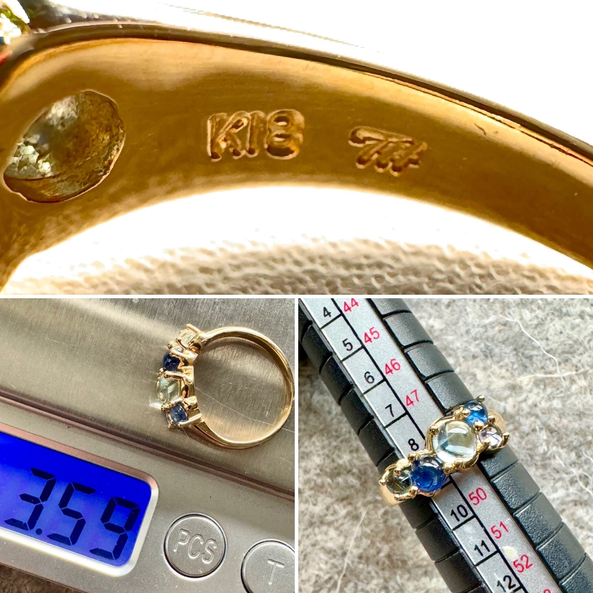 K18YG*9号*マルチカラーリング*トルマリン*カボションカット*ストーン