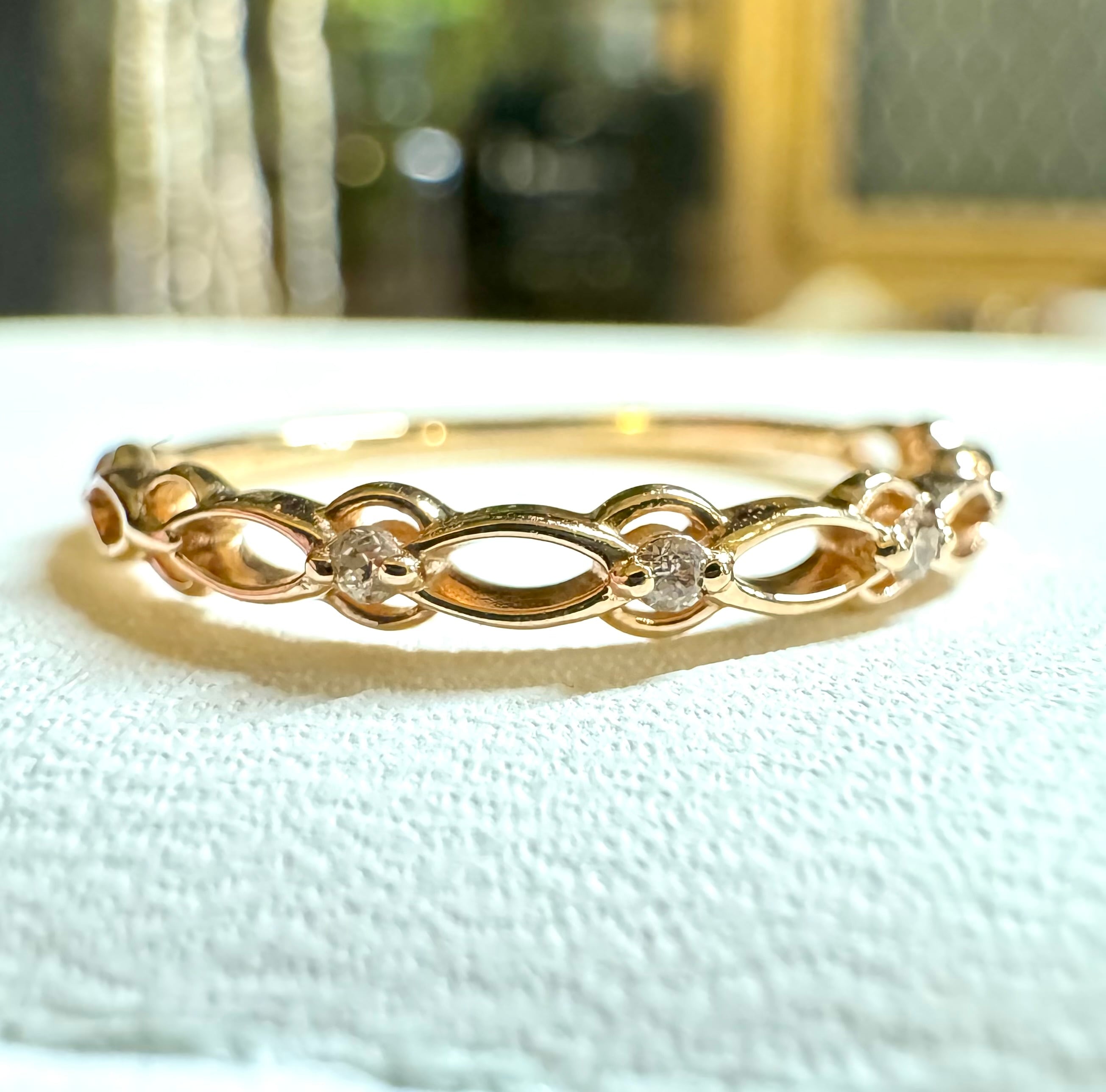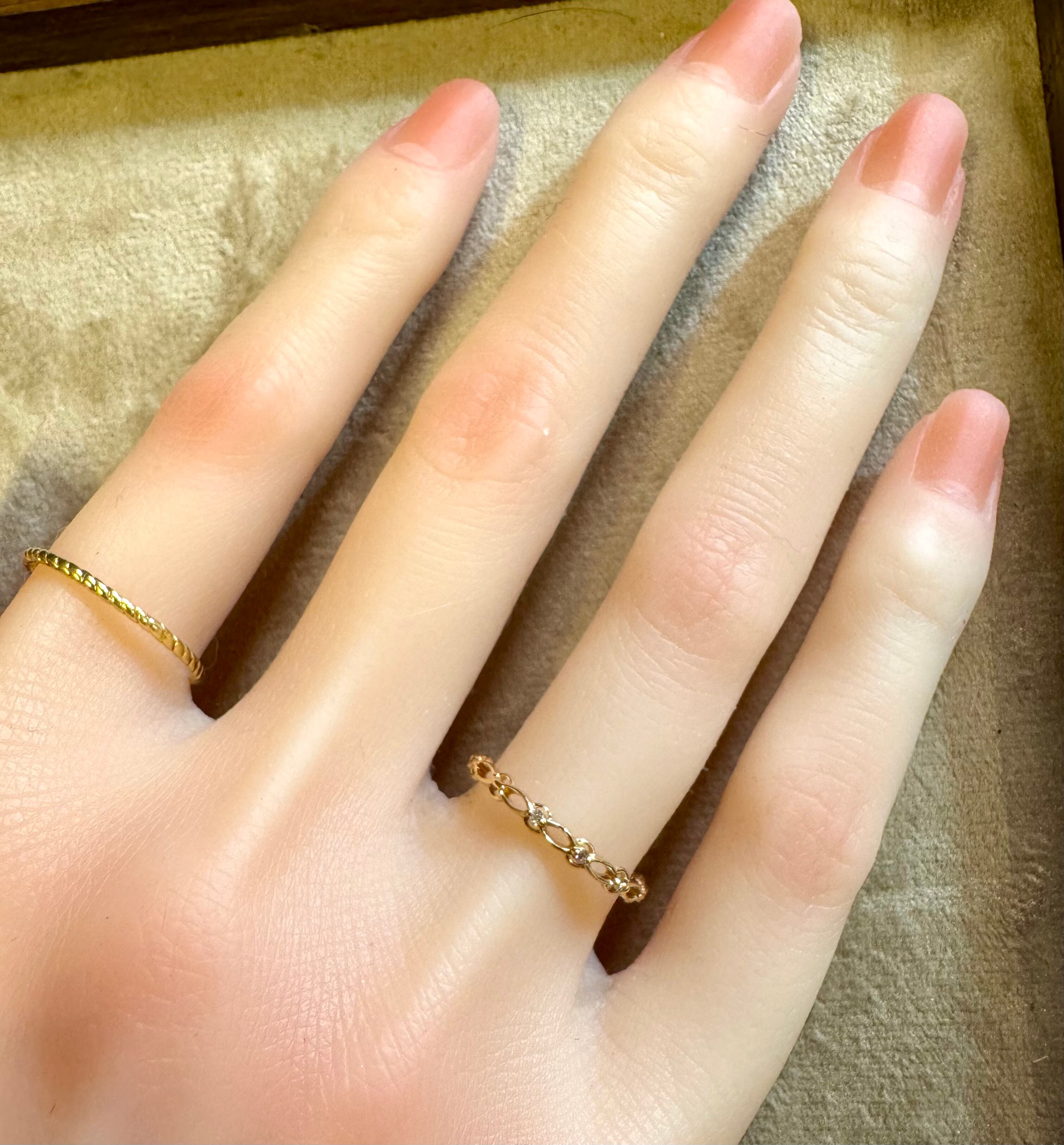 すっきりとしたシルエットにほんのり高低差をつけて、より透かし柄が印象的に指もとを華やかに彩ってくれます。