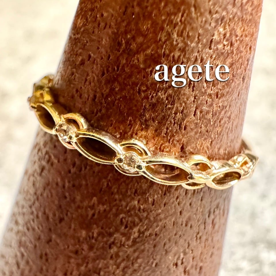 agete◆K10YG*13号*透かしコットンレースリング*アガット