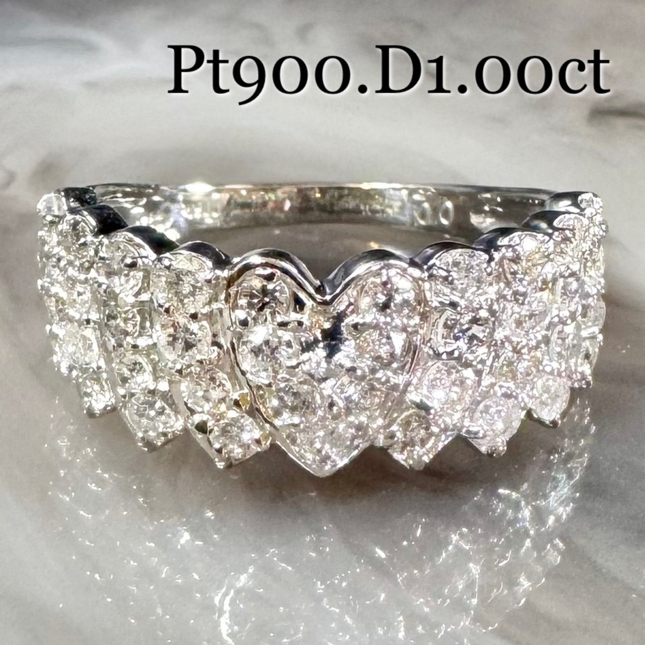Pt900*D1.00ct!ハートモチーフ*プラチナパヴェダイヤモンドリング*