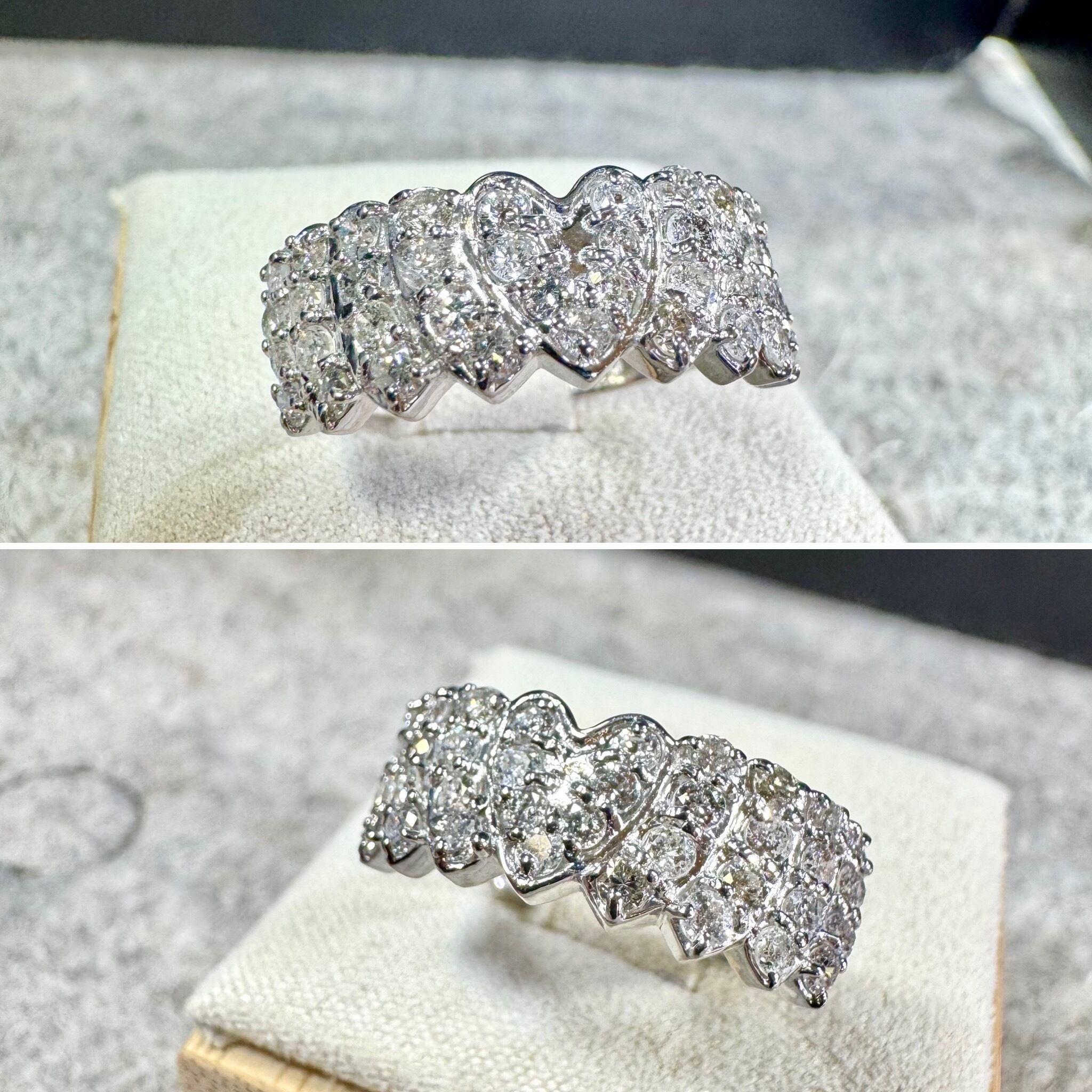 よく見るとセンターにハート型がデザインされており、照りの良いキラキラしたダイヤモンドが散りばめられています。